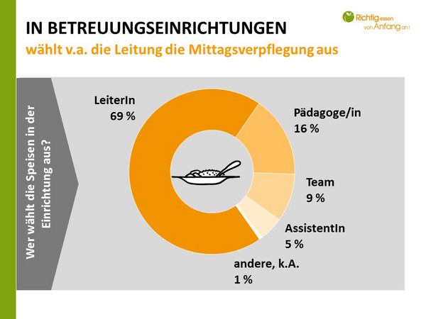 Grundlage für eine optimale Planung sowie Implementierung von Maßnahmen ist eine gute Datenlage. Deswegen hat „Richtig essen von Anfang an!“ eine bundesweite telefonische Erhebung zur Verpflegungssituation an österreichischen Kindergärten durchgeführt. Daten zu den österreichischen Kindergärten stellte, mit Ausnahme von Wien und Burgenland, die Statistik Austria zur Verfügung. Ziel dieser Erhebung war, die Verpflegungssituation mit dem Schwerpunkt rund um das Mittagessen an österreichischen Kindergärten genau zu erfassen. Somit liegen erstmals bundesweite Daten zu der Verpflegungssituation an Kindergärten für ganz Österreich vor. Die Ergebnisse der Erhebung sollen EntscheidungsträgerInnen, UmsetzerInnen oder BetreiberInnen eine informative Grundlage für Entscheidungen oder eine Hilfestellung bei Fragen rund um die Kindergartenverpflegung bieten. Verantwortlichkeiten, Abläufe und regionale Unterschiede werden aufgezeigt und bundesweite Vergleiche möglich. Zudem stehen für die regionale Projektplanung bundesländerspezifische Daten zur Verfügung.